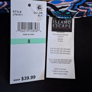 Island Escape Size 8 Women's Bathing Suit Top. Made exclusively for Macy's. Underwire bra, adjustable straps. Black, white, blue, pink colors. Style J761411. Interested, make an offer. From a smoke and pet hair free home. Fast shipping.