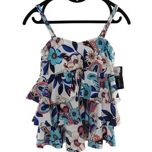 Size 6 - measures 13" side to side at the bust, 14" length from under-arm to bottom of hem