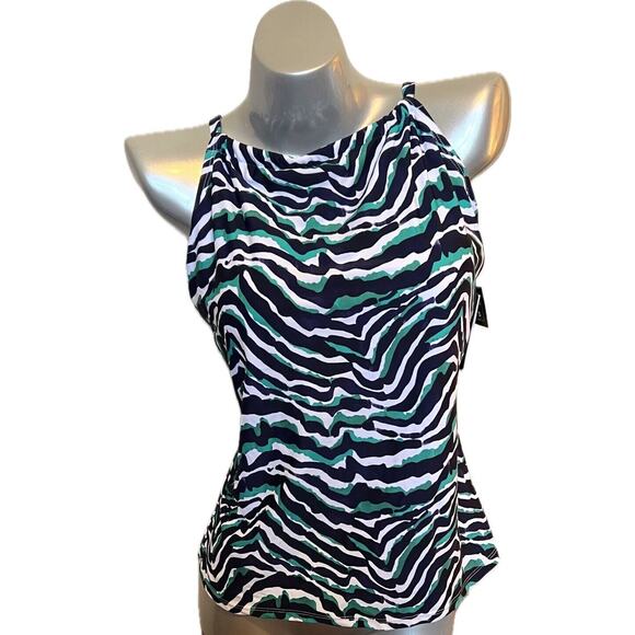 Island Escape Tankini Swimsuit Top Size 10 Green White Black Zebra Underwire NEW