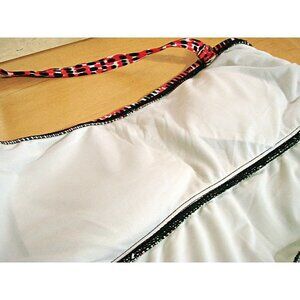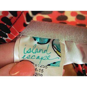 Island Escape Tier Ruffle Swimwear Tankini Top Womens Red Black Geo Print Size 14. Brand: Island Escape. Department: Women. Color: Red, White and Black. Size: 14. Type: Tankini Top Only in this sale - NO BOTTOMS. Swim Top Style: Ruffled Tankini. Material: 82% Nylon, 18% Elastane. Pattern: Geometric. Accents: Ruffled. Strap Type: Halter. Condition: Pre-owned in Good Condition. Measurements are taken laying flat, are in photos and are approximate: Pit To Pit: 15.5 in. - has some stretch. Minimal Wear. Top Only in this sale - bottoms NOT included. Smoke free and Pet free home.