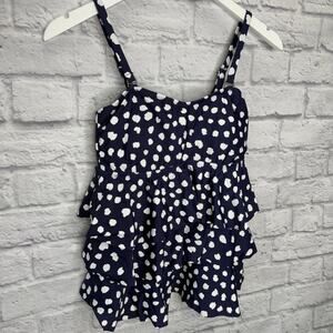 Island Escape Tiered Tankini Top Navy Blue White Dot Size 8 Underwire New Conver