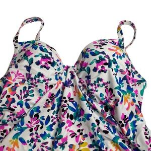 Island Escape Underwire Tankini Top Swimsuit White Floral Size 6 New