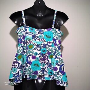 Island Escape White & Aqua Floral V-Neck Gold O-Ring Underwire Strap Tankini Top Separates with a FREE Bonus "Thank You" Gift.With Removable Pads. NWT Size 24W. Retail $49.95 Now ONLY $29.