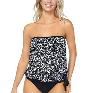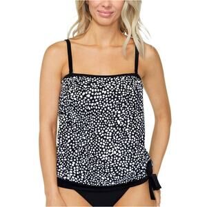 Island Escape Women Black/White Dot Print Blouson Swim Tankini Top Size US 12