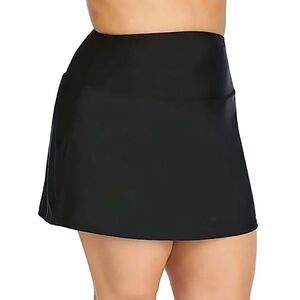 Island Escape Women s Skirt High-Waist Swim Bottom (Black 20W) Island Escape Women s Skirt High-Waist Swim Bottom (Black 20W) Nylon/spandex Attached brief underneath; tummy thinner and thigh minimizer High waistband Full bottom coverage Hand wash COLOR// Black