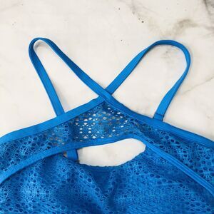 Island Escape Womens Lost At Sea Crochet High-Neck Tankini Top 8 Blue New Ruched