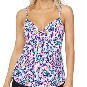 Look pretty in petals with this twist-front tankini top from Island Escape.