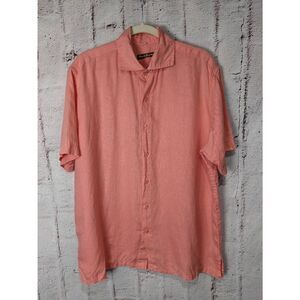 Island Importer Short Sleeve 100% Linen Shirt Orange Peach Men's Sz XL