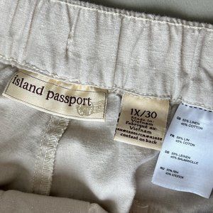 Island Passport Ankle Pants Womens 1X / 30 Drawstring Cotton Linen Summer Beach