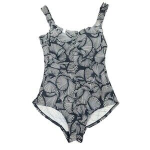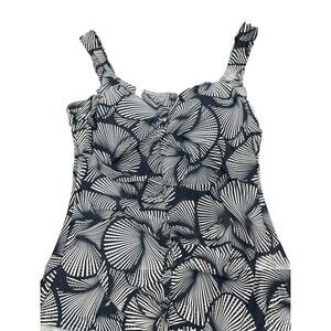 Island Pearls Women’s One Piece BLACK & WHITE Shell Pattern Swimsuit SZ 14