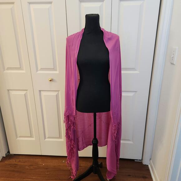 Island Planet Scarf Sarong Pink with Fringed Trim Sequin Detail