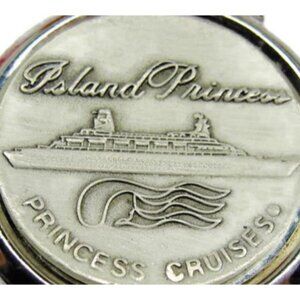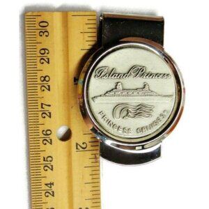 This vintage-style Island Princess Cruise SilverT Money Clip, by Princess Cruises, doubles as a cash holder and credit card wallet. Crafted in a sleek silver color, it's perfect for adding a touch of sophistication to any ensemble.