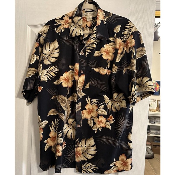 Island Republic Mens Short Sleeve Hawaiian 100% Silk Button-Up Shirt Large