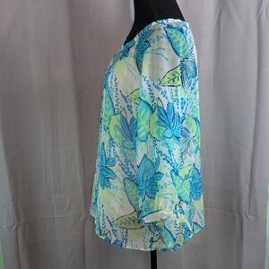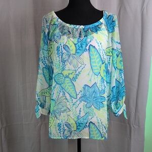 Island Republicโ Relaxed Blue and Green 3/4 Sleeve Blouse