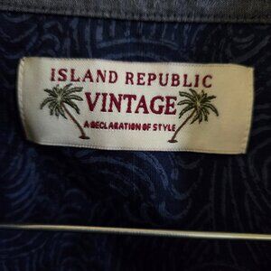 Island Republic Vintage Men's Dark Blue Print Short Sleeve Button Down Shirt
