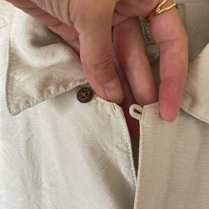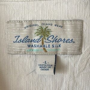 Island Shores 100% Silk Men’s Button Down Shirt L Hawaiian Neutral Cream Casual