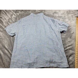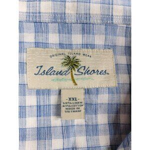 Island Shores Camp Shirt Men's 2XL Blue plaid Linen Blend Short Sleeve Button Up