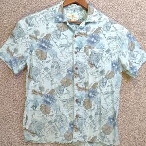 Island Shores Camp Shirt Tropical Map Large Rayon