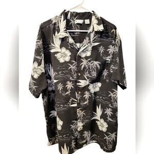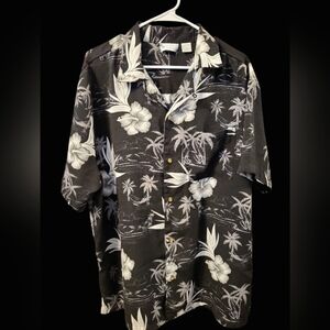 Elevate your style with this tropical-themed men's shirt. Featuring a striking black and white design, this shirt is perfect for casual outings or beach days. Enjoy comfort and style with every wear.