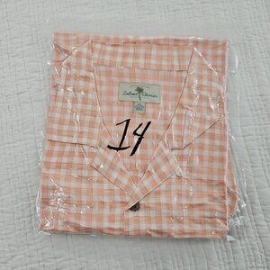 Island Shores Linen Blend Short Sleeve Button Shirt Men's XXL Orange White EUC
