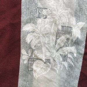 Richly colored in a deep burgundy, this Island Shores Hawaiian shirt is a quintessential blend of casual elegance and island-inspired flair. It's a versatile piece that features a palm print design woven into its fabric, reflecting a tropical paradise. Made from soft rayon, it offers a relaxed fit, enhancing comfort and adding a touch of exotic sophistication to any ensemble.