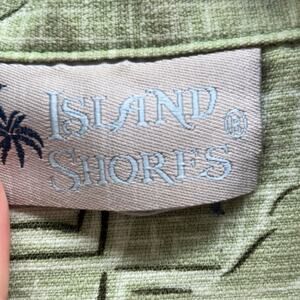 Island Shores Mens Size Large Green Hawaiian Floral Button Up Short Sleeve Shirt