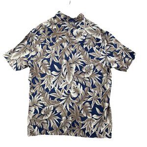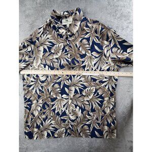 Island Shores Shirt Mens Extra Large Blue Tan Hawaiian Button Up Floral Rayon