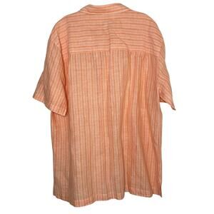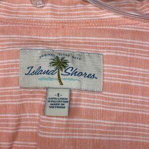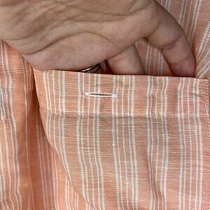 Island Shores Striped Button Up Shirt Mens Size L Linen Blend Orange White