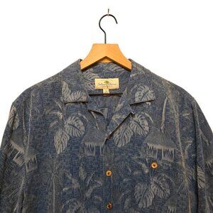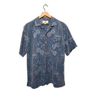 Island Shores Vintage Silk Hawaiian Floral Short Sleeve Casual Button Down Sz M
