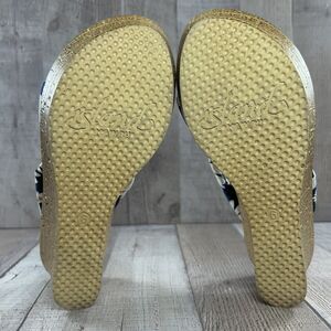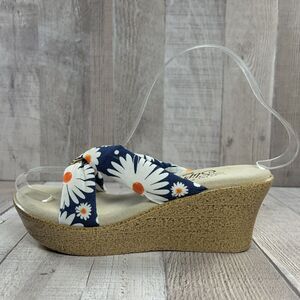 Island Slipper Hawaii Women's Wedge Sandals Floral Tropical Navy White Size 6