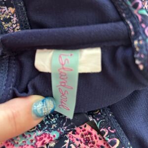 Island Soul Navy Blue Multi Macrame High Neck Tankini Swim Top Size Small