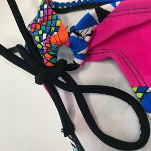 Island Soul 80’s print bikini bottoms, size L. Loop tie sides, nylon/spandex.