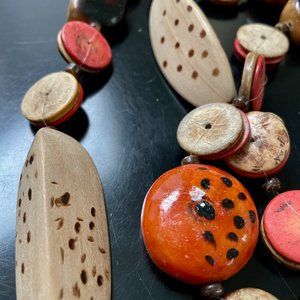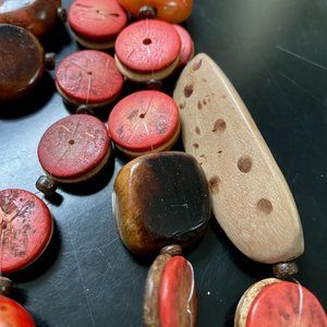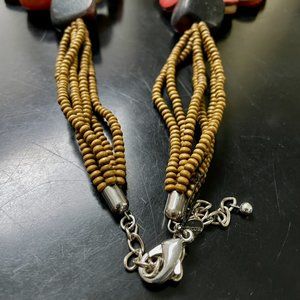 Chunky, three-tiered, colorful necklace with a strong clasp.