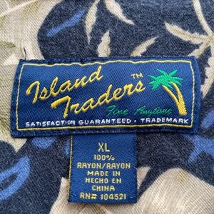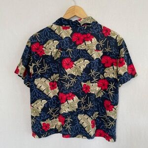 Island Traders Hawaiian Cropped Camp Shirt Red Hibiscus on Blue Size XL