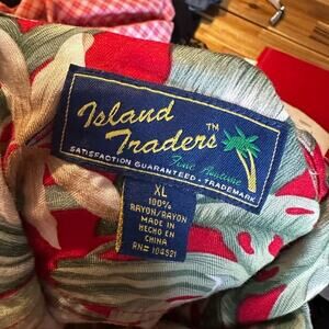 Relaxed Island Traders Hawaiian-style button-up shirt in size XL, featuring a vibrant tropical print. Lightweight and breathable fabric makes it perfect for vacations, beach days, or casual summer wear. Easygoing fit with classic island flair. Gently worn and well maintained, bringing laid-back style and color to any wardrobe.