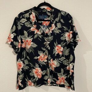 Island Traders Black Tropical Floral Vintage Lightweight Loungewear Set