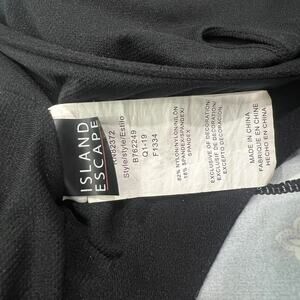 Island Escape underwire tankini top, size 12. Features a bold black base with pink and white paisley-inspired accents for a chic boho vibe. Flattering halter neckline with supportive underwire cups, and adjustable straps. perfect for pool days or beach getaways. Pair with your favorite swim bottoms for a stylish summer look.