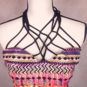 Island Escape Multicolor Geometrical Print Tankini Swim Top Size 12