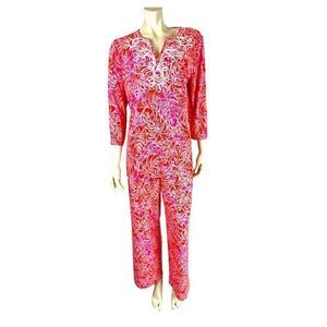 Island Republic Vibrant Floral Tunic/Pant Set Like New Condition Size Medium