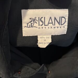 Island attitudes mens sz M SS black silk shirt EUC great w/ jeans slacks shorts