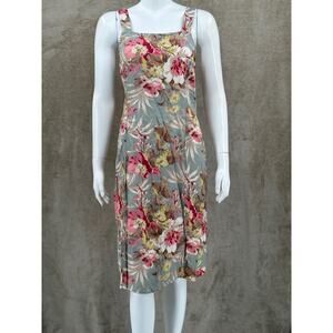 Islander Dress Womens 8 Tan Pink Sleeveless Floral Tropical Hawaiian Vacation