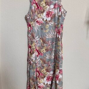 This Islander sundress is perfect for a casual day out or a resort getaway. Featuring a vibrant mix of pink and red floral patterns, the sleeveless design with spaghetti straps offers a breezy and stylish look. The midi length and flowy fabric ensure comfort and elegance in warm weather.