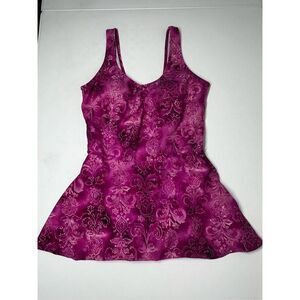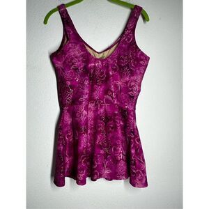 Islander Purple Gold Floral Lightly Padded Skirted One Piece Swimsuit Size 10