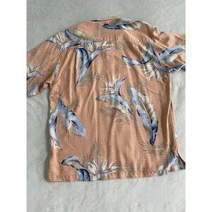Islanders Mens Washable Silk Hawaiian Shirt Feather Print Small Tear Mended M