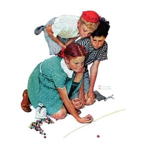 The original painting captures a moment of childhood competition and the simple pleasures of play. Rockwell's work often evokes nostalgia and is considered a significant part of American art history.