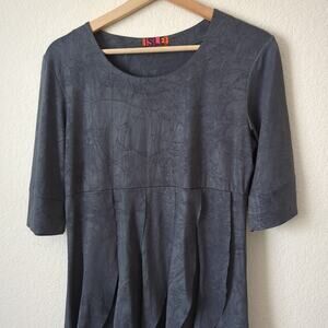 Isle Apparel Womens Lagenlook Boho Tunic Dress Metallic Gray Textured Medium