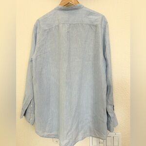 Isle Bay Linens Light Blue 100% Linen Button Down, Size Large Rolled Sleeve