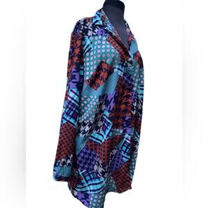 Isle By Melis Kozan Mixed Print Eclectic Artsy Boho Relaxed Tunic Button Top L