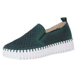 Isle Jacobsen Hornbaek~ Tulip Plateau slip-on flats in color Beetle