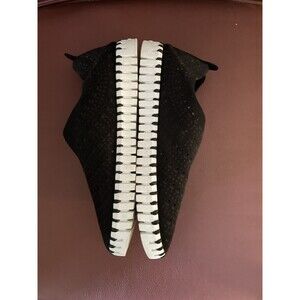 These shoes were worn once or twice and are in excellent condition. They are made from recycled microfiber, recycled stitching, no glue, laser cut pattern, flexible natural rubber sole.